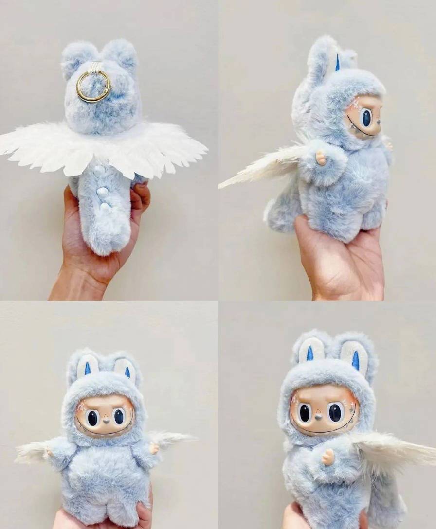 18cm Retrofit Angel Wings Labubu Plush Toy - Handmade Unique Labubu Custom Design